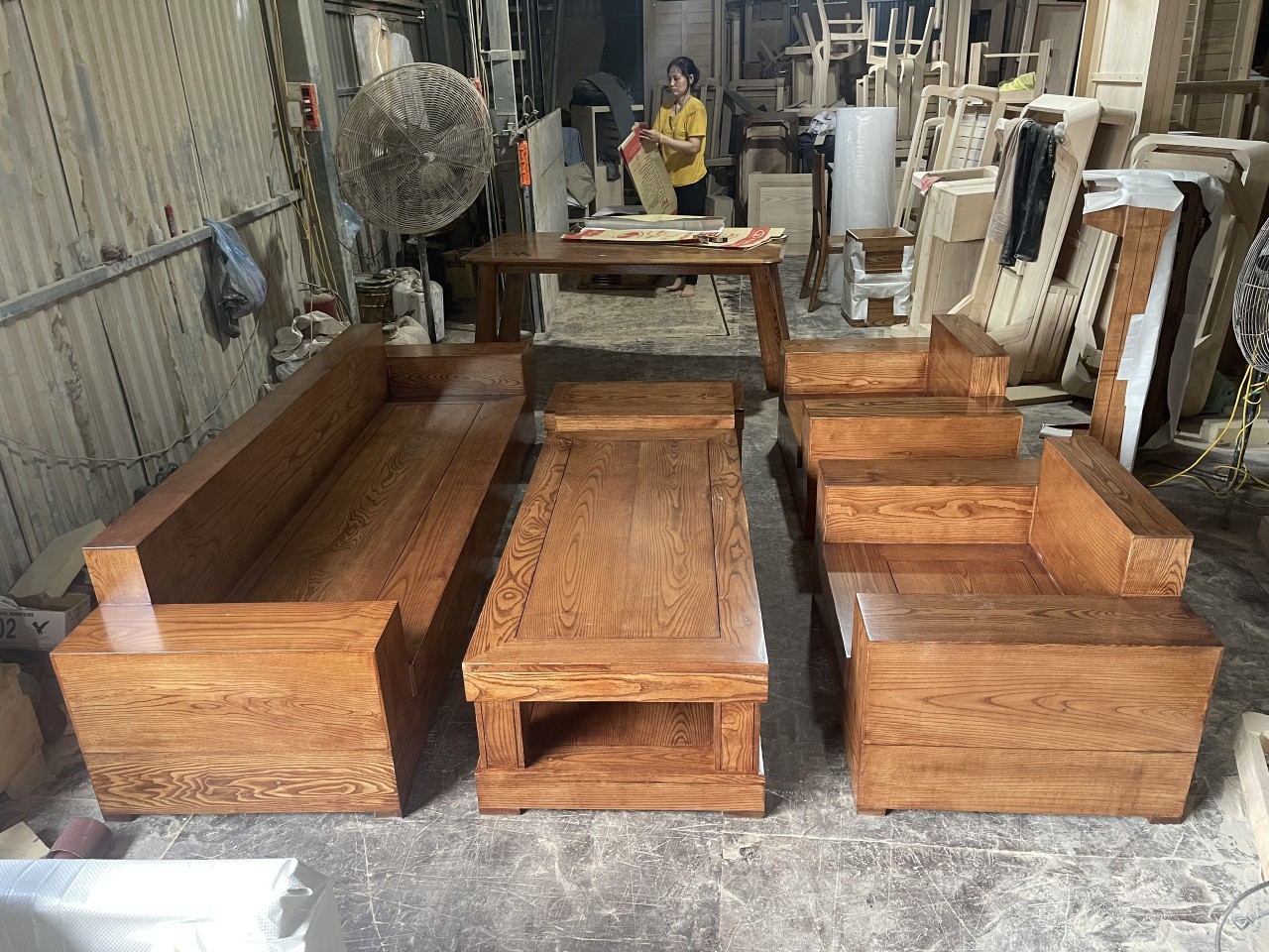 Bô sofa phòng khách ghế hộp giả nguyên khối gỗ sồi lau óc chó.Kích thước 2m3×2m3