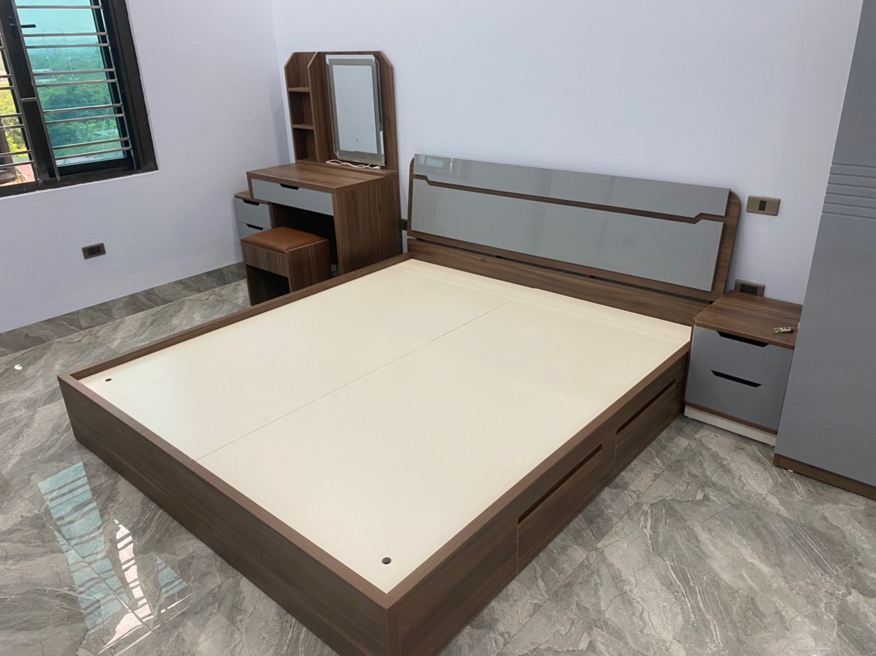 Giường Ngủ Kích thước trong lòng 1800 x 2000 cm , tab đầu giường sơn bóng cao cấp , bàn phấn trang điểm Chiều dài mặt bàn 850cm có đèn led , có thể thay đổi chiều dài bàn để phù hợp với nhiều không gian phòng ,gương led bật tắt cảm ứng + ghế đôn mặt đệm bọc da